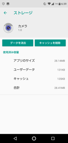 ③ 表示されたストレージの「データーを消去」をタップ・・・念のため「キャッシュを削除」もタップ