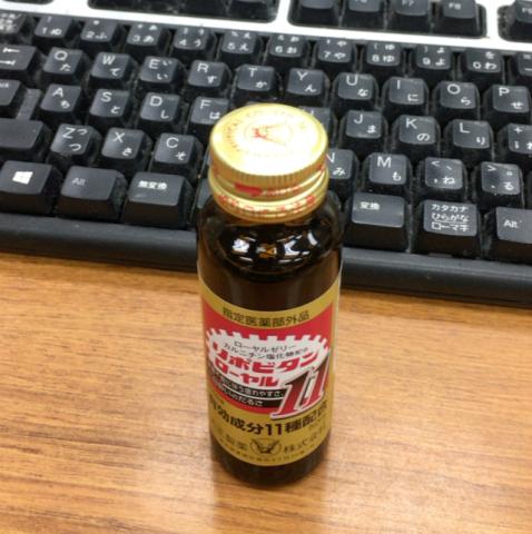 タウリン、ローヤルゼリー、シゴカ流エキス、クコシ流エキス-A、塩化カルニチン、イノシトール、ニコチン酸アミド、チアミン硝化物(ビタミンB1)、リボフラビンリン酸エステルナトリウム(ビタミンB2)、ピリドキシン塩酸塩(ビタミンB6)、無水カフェイン、添加物:白糖、D-ソルビトール、スクラロース、ポビドン、安息香酸Na、クエン酸Na、クエン酸、pH調整剤、香料、アルコール、グリセリン、バニリンとたくさん入っています。