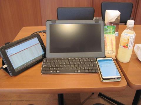 マウスコンピューターのノートパソコン「m-Book W シリーズ MB-W710S-SH」とフルサイズキーボード・マウスも持ち込んだ。