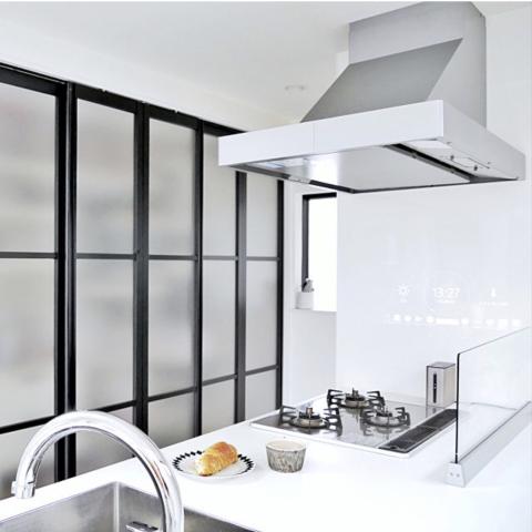 我が家ではキッチン横に置いており、動画を見ながらお料理しています。タッチする場所が壁なので汚れた手で触っても気にならず安心です。