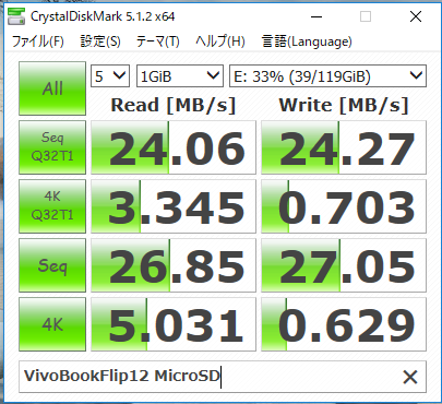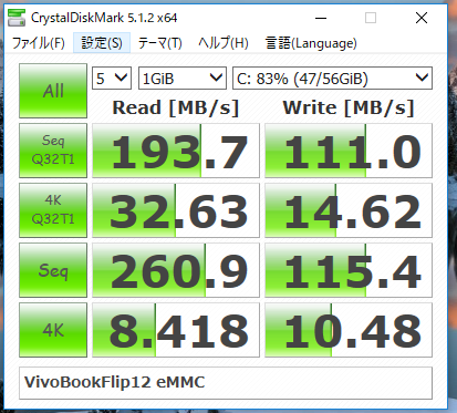 eMMCはCherryTrail世代に比べると性能アップしています。
