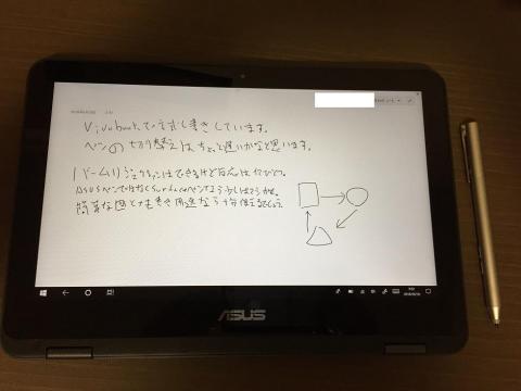 PCとしてのスペックも低いので絵を描いたりするのは厳しそうですが、OneNoteに手書きするくらいなら十分です。