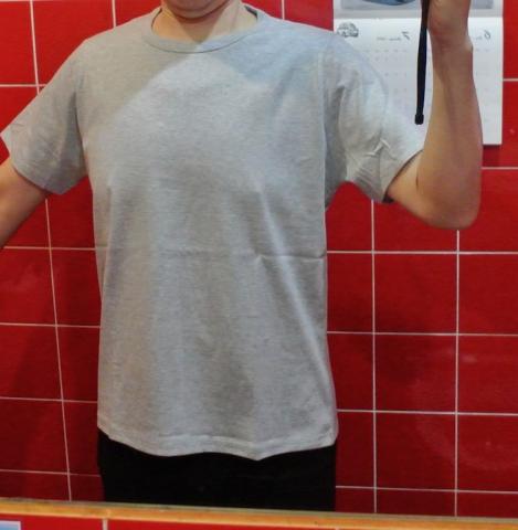 還暦男の白いTシャツは、下着にしか見えないので、白・灰から灰を選択します。