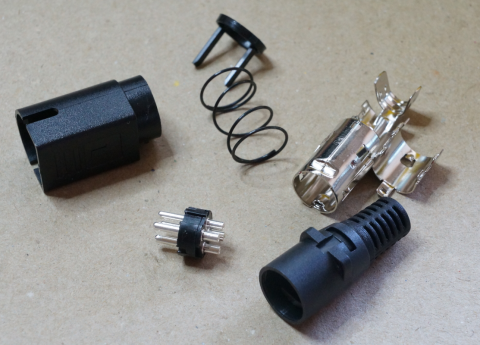 DIN規格はかなり古い規格なのだと思います(調べてませんけど)。多芯なのにハウジングのスペースが狭いとか、接点ピンの抜けやすさとか、手作業で加工をすることを想定している割には使いにくい接続方法ですよね。