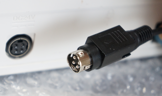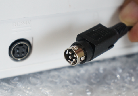 こちらのスキャナーのために専用ACアダプターを入手できなかったので、一時本体から電源線を引き出して他の電圧電流の適合するアダプターを使用していました。今回、アダプターのコネクターをパワーDINコネクターに付け替えて専用品同様に使用できるようにしました。