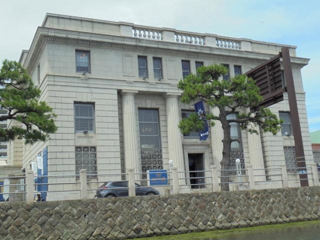 旧日本銀行の立派な建物を改造。 内部には島根県初のエレベーター 地下にはアメリカ製の分厚い扉を持つ大金庫室を拝見することも可能でした。