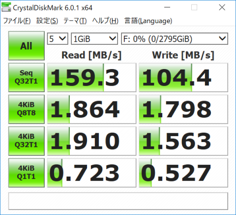 NTFSフォーマット時に標準のアロケーションサイズでやったせいか、こんなもんでしょうか。