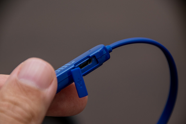 中に短いUSBケーブルが出ていて、ここに接続して充電しながら収納します。最大16時間分の充電が可能になっていて、15分間の充電だけでも1時間使用できる急速充電も可能になっています。