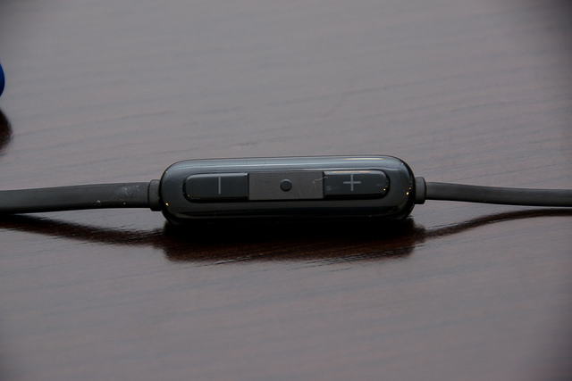 ペアリングの操作についても他メーカーとほぼ同じ動きですので、迷うことはありませんでした。中央の電源ボタンで再生・停止、+ボタンで音量アップ、-ボタンで音量ダウン、長押しで前後スキップです。
