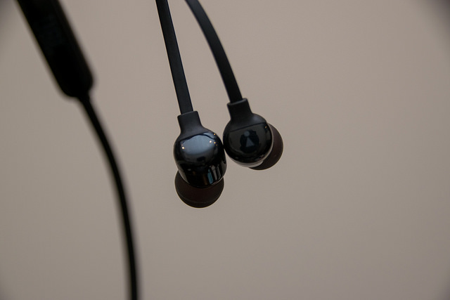 イヤフォン部分はマグネットが内蔵されていて、側面部分をくっつけて固定しておくことが出来ます。首からかけている時に何気に便利な機能ですね。ただ、オフィスデスクによっては不用意にくっついてしまったりするので、後述のケースに入れておくことをお勧めします。