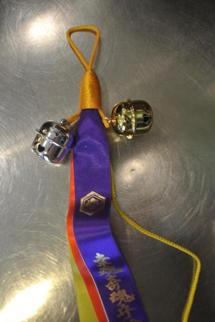 かなり大ぶりの銀と金の鈴 黄色の紐の先には総