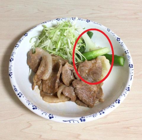 アスパラと豚肉の下になって居ますが、カリフラワーが2切れほどあります。