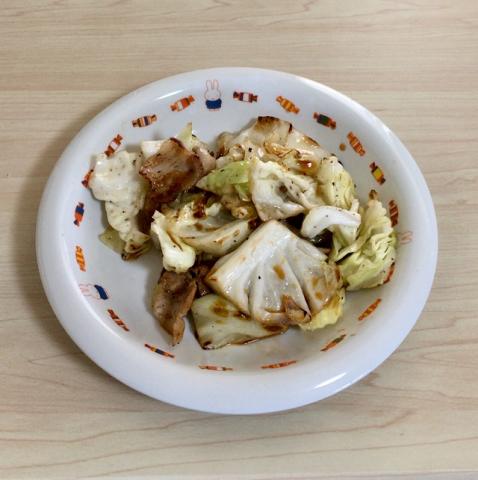 葉の外側では無く、芯に近い内側の白っぽい歯と豚肉を炒めています。