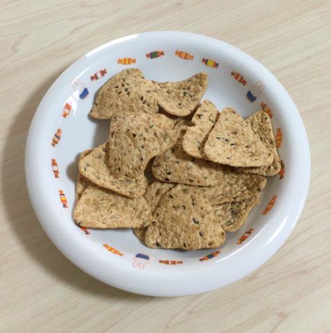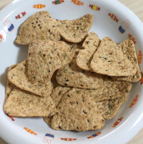 お米をベースにした生地に黒大豆・黒ごま・きなこ・おから・玄米・えんどう豆で作ったチップスです。