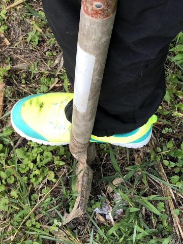 土を掬う作業を行いましたが、スコップにしっかりとソールがグリップして滑ることなく作業できました。
