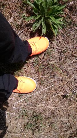 今回の商品は、オレンジがメインカラーとなっており、一見して普通のスポーツシューズにしか見えません。