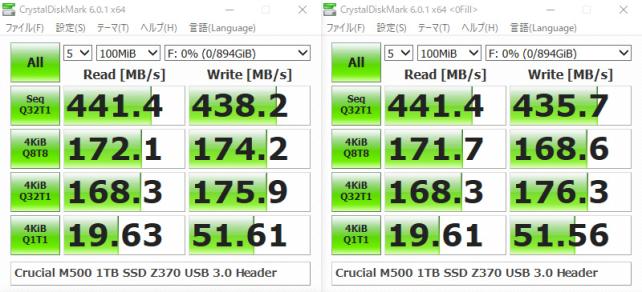 やはり、マザーボードのバックパネルに接続したスコアと変わらない速度をPCケースのフロントパネルで利用できるようになりました。