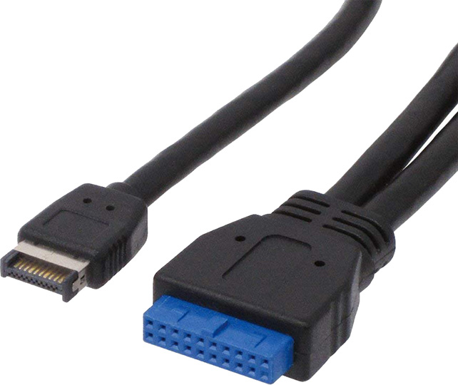 向かって右側の端子は、お馴染みのUSB 3.0 Gen1 Type-A x2が増設できるマザーボード上のピンヘッダに挿すものです。