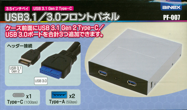現在、サブシステムは、AsRock X390 Taichiなので、USB 3.1 Gen2 Type-C用のピンヘッダは付いていないのですが、そのうち、システムを更新する際に使えるのではないかと思い購入しました。