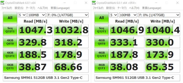 先日購入した、NVMe M.2 SSDをUSB 3.1 Gen2 Type-Cに変換するSSDケースに、Samsung SM961を入れて、Type-Cで接続してみました。