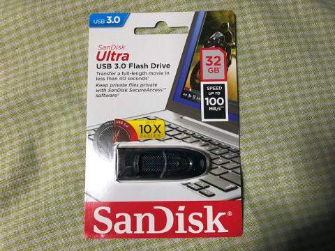 USB3.0対応の32GB USBメモリーで、実売価格1,000円以下という格安品でありながら、速度性能100MB/sを謳うということに興味があり、他の買い物のついでに買ってみることにしました。