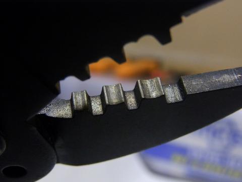ボルトカッター部分を利用してカシメを開いてあげると、軽いハンドル操作が可能となります。