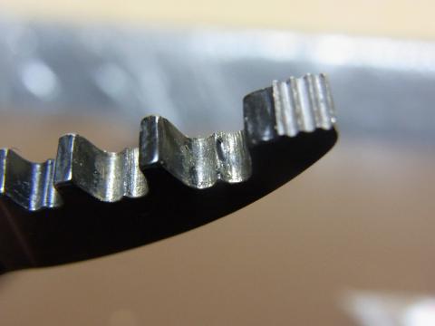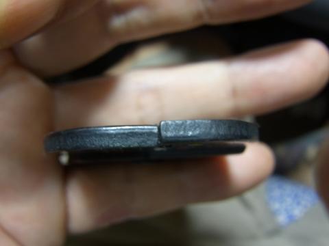 ダイス部が薄く加工して有るのでうまくカシメられずダイスの厚み幅でえぐれましたw
