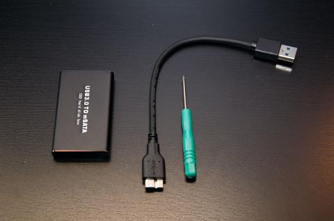 内容物は、アルミ製の筐体とUSBケーブル、それに組み立て用のドライバーが一つ。