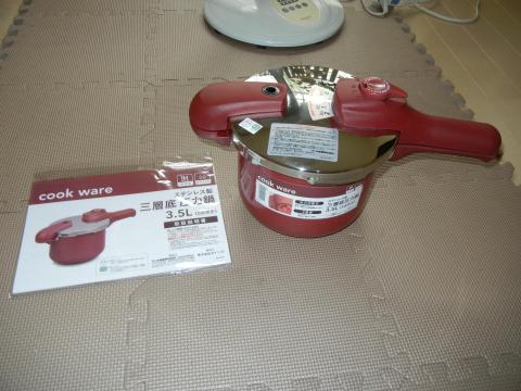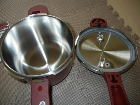 この圧力鍋はステンレス製で3層構造になっている様です。