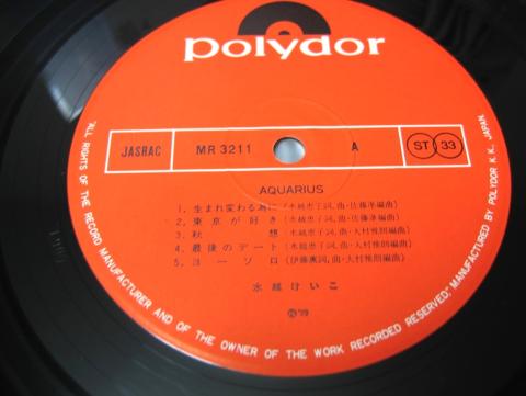 LPレコード 水越けいこ「アクエリアス」 ポリドール MR3211