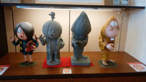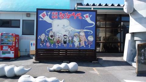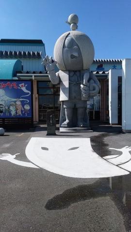 こういう魚市場のキャラクターになってるなんて隔世の感ですよ 明るすぎます 旅館の刺身の盛り合わせに一反木綿が出るくらいですからね 地元ならではですよ 町おこしで鬼太郎キャラが使われるなんて水木先生も満更でも無かったと思います。