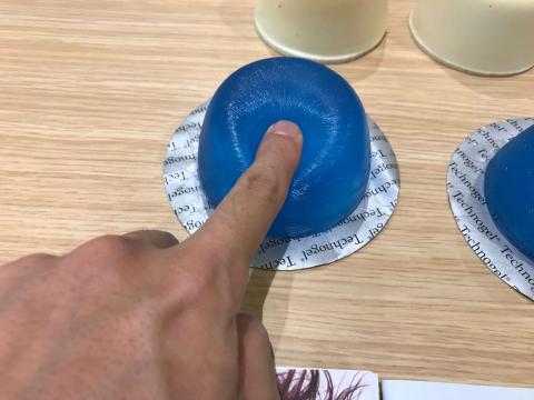同じ形の Technogel とウレタン素材を押してみて触感を比較するというもの。