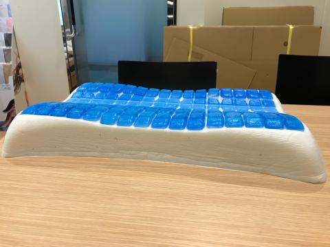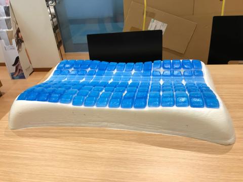 ジェルが格子状に並んでいるのですが、噴き出てきた空気がその間を通って左右に広がるので非常に通気性が良いとの事でした。