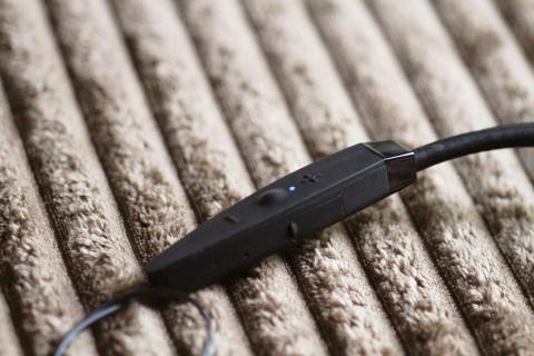 Bluetooth接続が確立して音楽再生が出来ているときには、再生/停止ボタン脇にあるLEDが周期的に青く点滅します。これは他のBluetooth接続イヤフォン・ヘッドフォンも概ね同様の動きとなりますので特記する部分はありません。