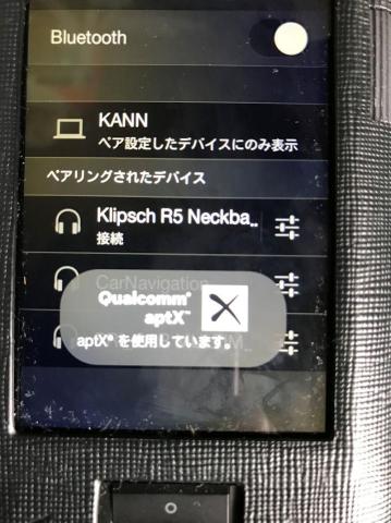 ▲Astell&Kern KANNやAK70、ONKYO DP-CMX1では、aptX接続時にこのように表示されます。