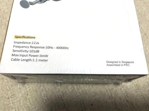 パッケージに主な特徴・性能は記載されていました。高域方向の再生周波数は40,000Hzに達していますのでハイレゾの基準は満たしていますが、恐らく日本オーディオ協会の認定は受けていないのでしょう。お約束のハイレゾロゴはありません。