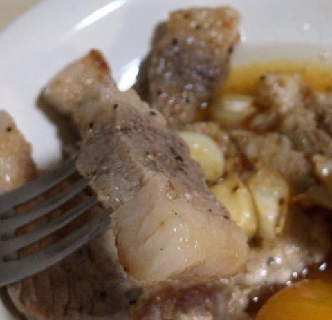 豚に与えた餌や受けているストレスにも依るのでしょうが、この肉の脂肪は臭味が無いばかりか甘くて美味しいのです。
