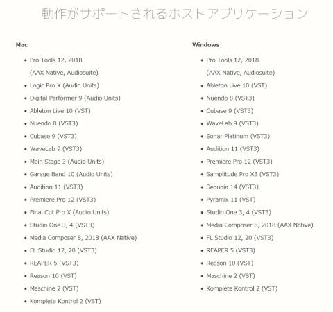サポートされるホストアプリケーション(有料、無料も有るようです)