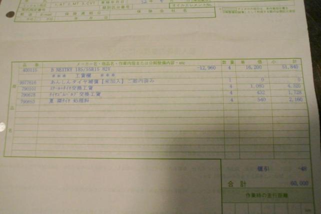 今回は予想より多めに支払った タイヤ単価 でしたが