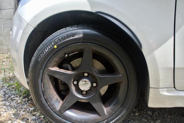 緊急で履かせたタイヤの引っ張り感が何とも^^;