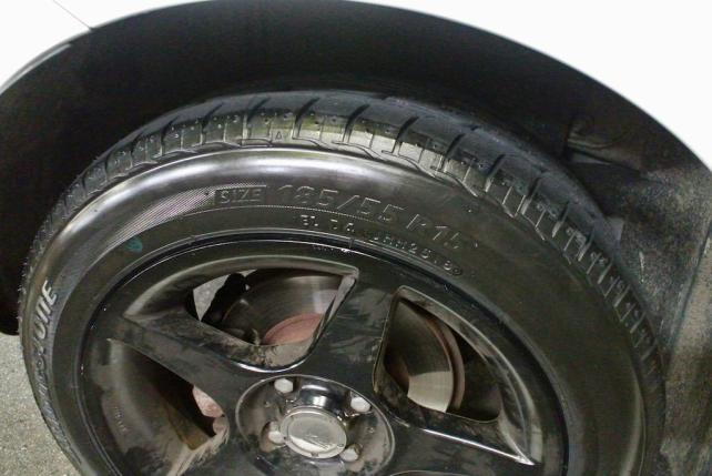 サイズは185/55R15ですが、件の工場からいただいたタイヤのサイズは165/55R15でした
