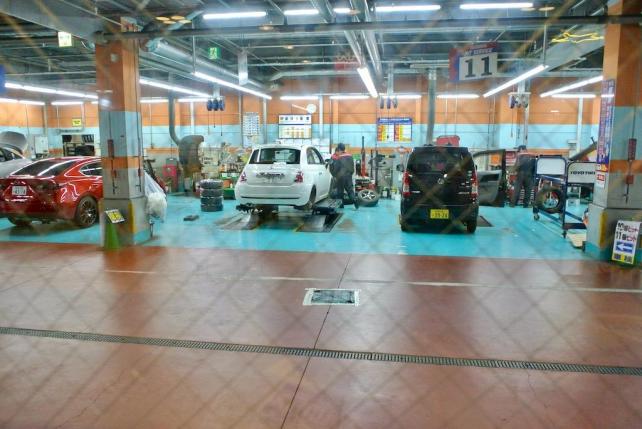 スーパーオートバックス京都ワウワンダーシティでは、作業の様子を安全なところから見学することが可能でした。