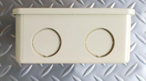 でもやっぱり専用品です。ただのプラスチックボックスではないのです。この塞がっている穴を貫通させればPF管を通して見た目よく配管することが出来ますよ。