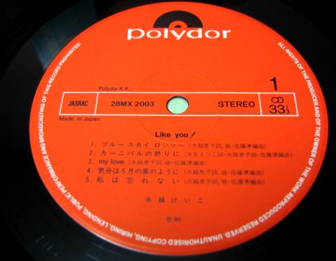 LPレコード 水越けいこ「LIKE YOU!」 1980年発売