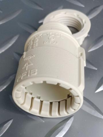 電気扱う職業の人にはお馴染みの、DIY好きにもお馴染みの電線を通すためのPF管っていう管があるんですが、そのPF管をボックスに接続するための物なんですよ。