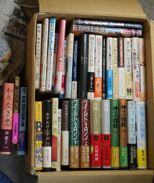 たぶん、ブックオフへ行けば108円コーナーに並ぶ本ばかりです。相当古い、1990年代発刊のも含まれていますが、必ずしも新しくなくてもいい種類の本が多い箱を選んだつもりなので、あまり気になりません。