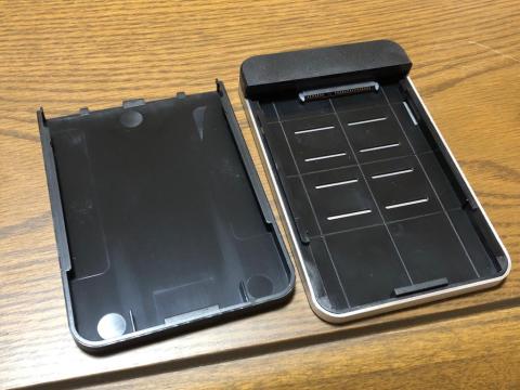 エッジがキラキラした丁寧な加工のHDDケースとなってますね。