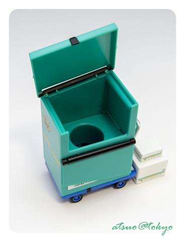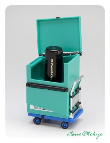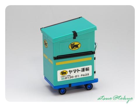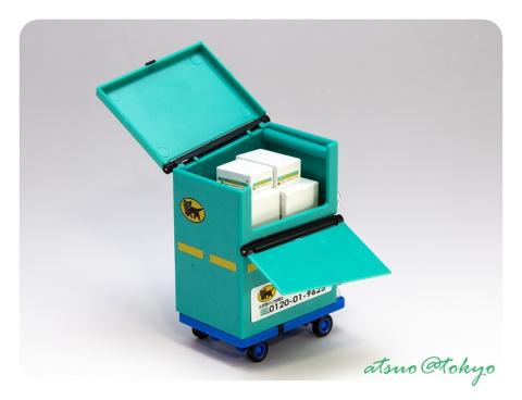またこちらの台車に乗せている以外にも違うタイプの箱があるようで、全方向に進むタイヤの台車に乗せて一人で二箱を前後に押して引いて配達しているのもよく見かけます。