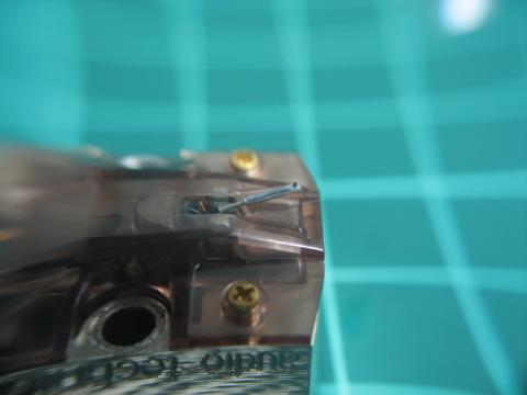 針が取れたベリリウムカンチレバーに、若干径の太い針組み立てを被せてエポキシ系接着剤で接着しました 針チップだけ接着したいですが難しそうです...オリジナルは楕円針が付いていましたが手元に有った径の細い針(多分丸針)組み立てを探してエポキシ系接着剤で接着しました。
