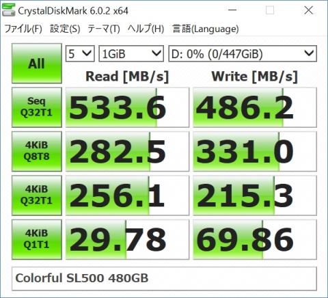 シーケンシャルリードライトが、500MB/sec近く